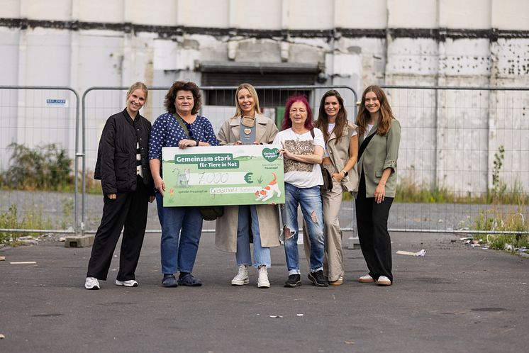 Gemeinsam für den Katzenschutz (v. l. n. r.): Theresa Spenrath (Fressnapf), Cerstin Heinrichs (Katzenschutzbund Köln e.V.), Mania Leveringhaus (Initiatorin Großmarkt Katzen Köln), Gabriela Biesek (Straßenkatzen Köln e.V.)